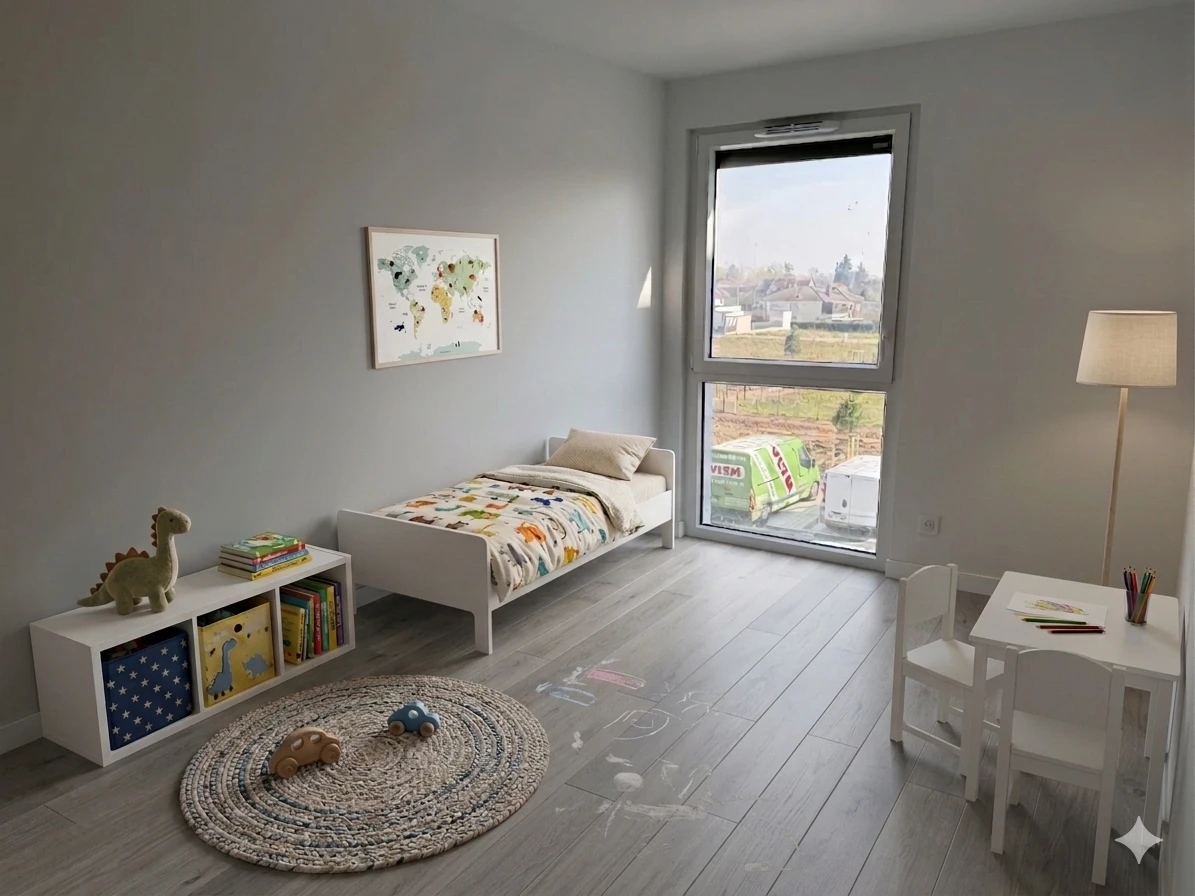 L’espace nuit se compose de deux chambres, permettant de répondre à différents profils locatifs : couple, petite famille ou actifs en télétravail. Cette polyvalence contribue à sécuriser la mise en location de l’appartement.